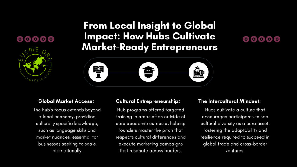 • Global Market Access: The hub’s focus extends beyond a local economy, providing culturally specific knowledge, such as language skills and market nuances, essential for businesses seeking to scale internationally.