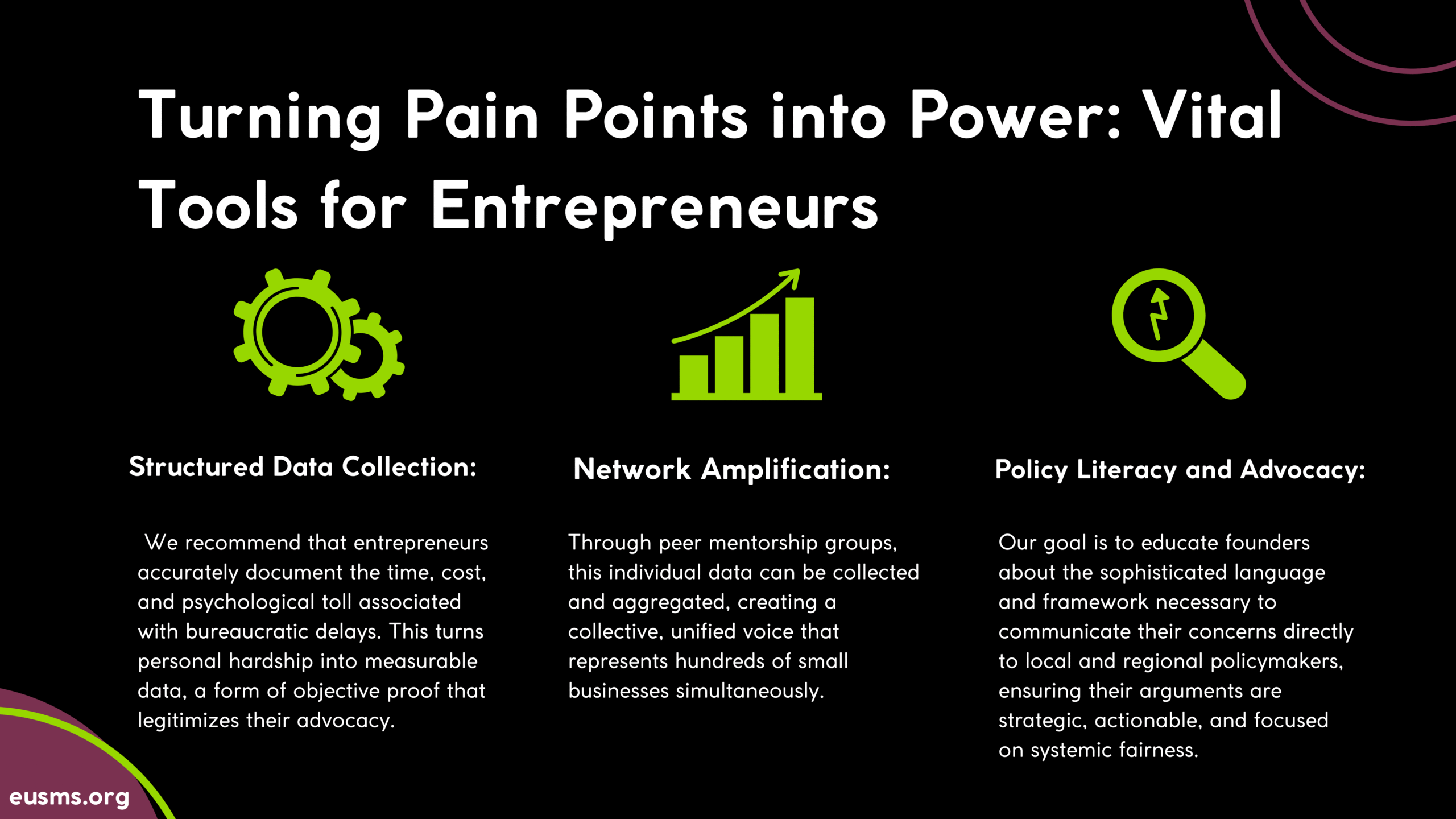 These systemic hurdles disproportionately harm micro-enterprises and act as a major brake on regional economic growth. At EUSMS, we believe the long-term solution is not to simply educate entrepreneurs to navigate bad policy, but to empower them to advocate for better, more equitable policy.